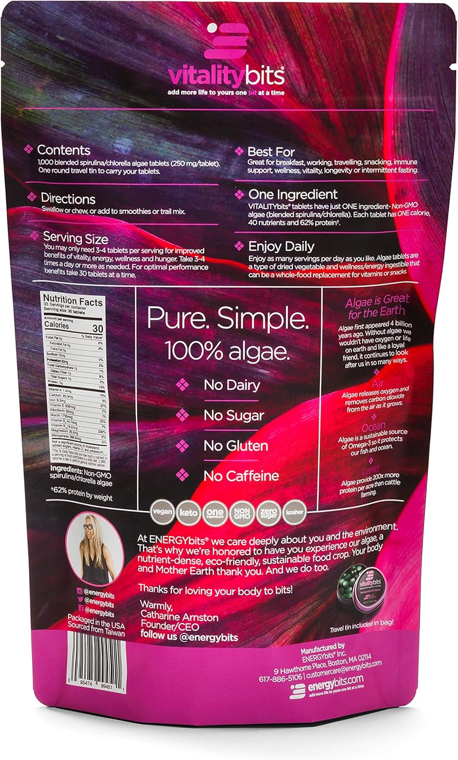 Energybits® spirulina tablets supercharge your work day and workouts by giving you steady energy, focus and endurance.